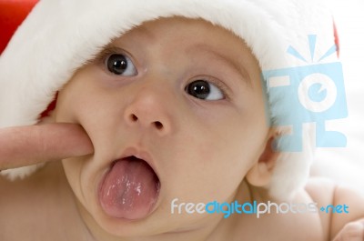 Little Baby Wearing Santa Cap Stock baby wearing cap