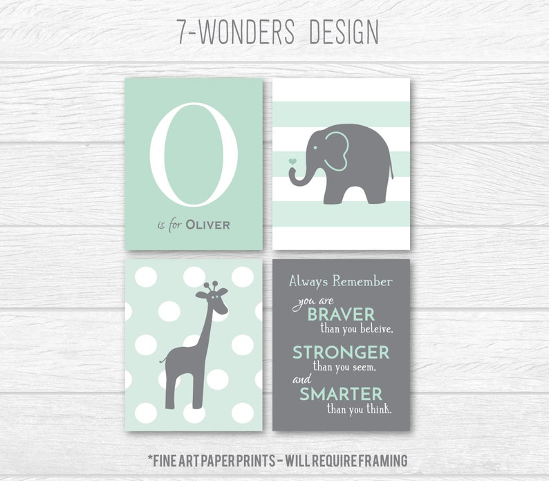Elephant Boy Nursery Wall Art Prints personalized name art for nursery