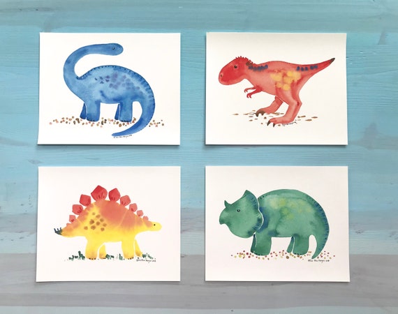 Baby Dinosaur Prints WATERCOLOR Nursery dinosaur decor for nursery