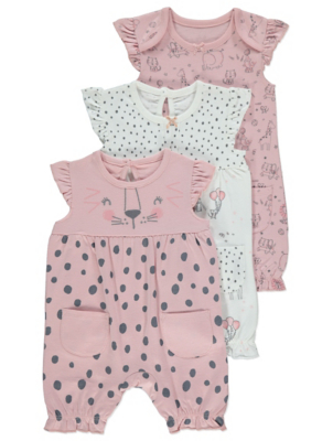 Pink Animal Print Jersey Rompers 3 Pack asda rompers