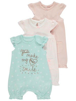 Pink Floral Slogan Rompers 3 Pack asda rompers