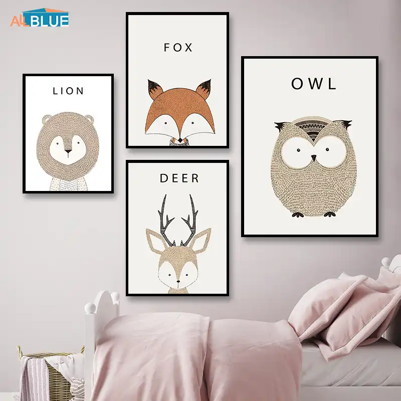 Poster Nordic Baby Animal Lion Fox Wall nordic nursery prints